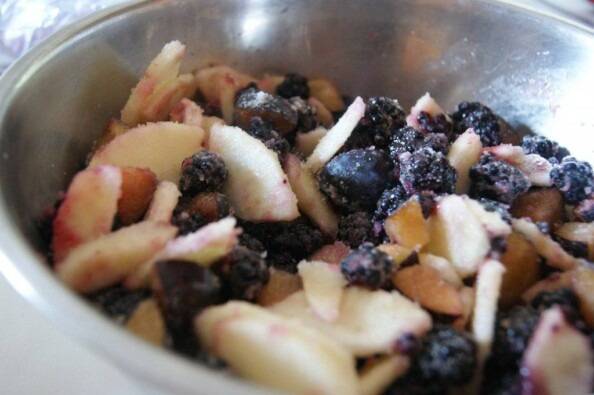 Apparently, I must now make this pie every summer or suffer the horror and indignation of my children. And it most definitely has to be made with the same fruit we found on our first fruit-picking venture at the Train Museum: apples, plums and blackberries.