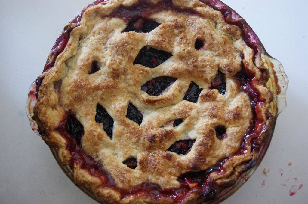 The fruit was a bit small and scabby – better for baking than anything else. So that evening I made pie: an apple-plum-blackberry foodgasm.