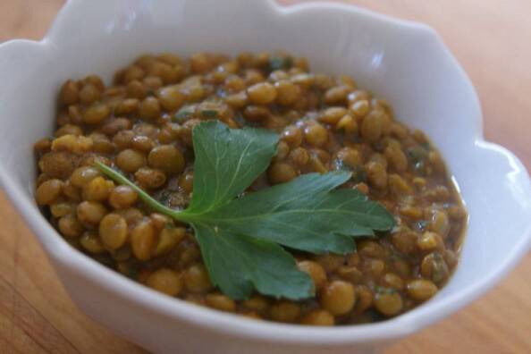 2) If you would like to add vegetables to the lentils, add 1 cup diced hard vegetables (i.e. carrots, green beans) about halfway through the cooking. This variation will require the extra 1/2-cup of water for sure. Or, stir in some finely chopped spinach when you add the herbs and lemon juice.