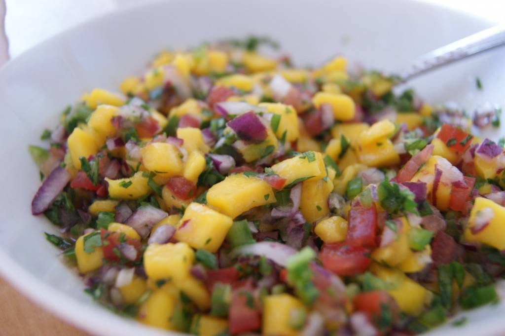 Spicy, flavourful, refreshing, slightly sweet, mango salsa is a delicious accompaniment to tacos, quesadillas, and grilled fish, but also to less-obvious eats such as Vietnamese salad rolls, black bean soup, scrambled eggs, or plain old beans and rice.