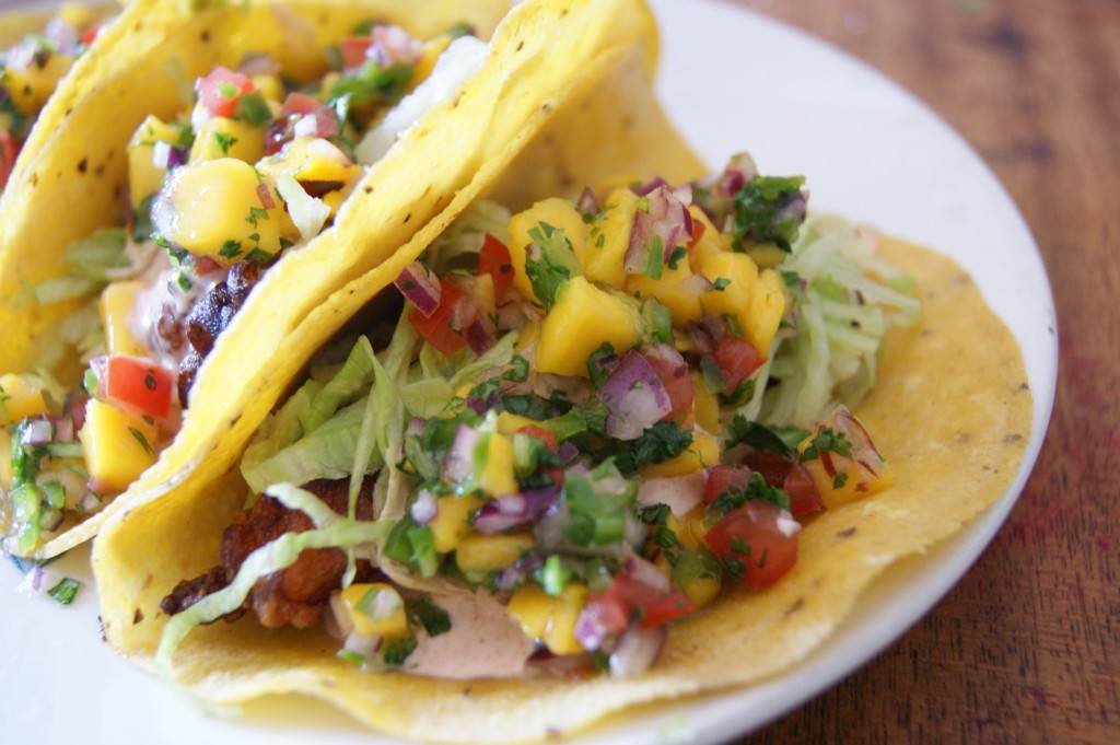 I don’t do this very often, but when I do, the participants never seem too broken hearted about the fact that there is no take-home recipe of the sad trial they were put through. But not so at last week’s Taco Party. I was trying out some fish tacos and the recipe was a *big* hit. The mango salsa part of said fish tacos was an even bigger hit.