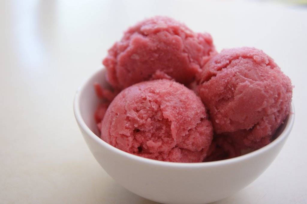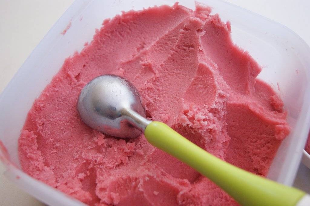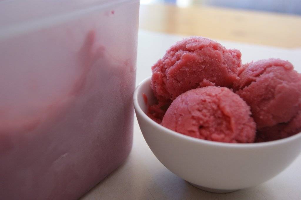 Taste the sorbet mixture. If it is a bit too sweet, add the remaining lemon juice, one tablespoon at a time, until the desired balance of sweet and tangy is reached. Transfer mixture to a clean, seal-able container (I usually use a couple of large mason jars) and store in the fridge overnight, or until well-chilled, at least 4 hours. Transfer sorbet mixture to an ice cream maker and freeze according to the manufacturer’s directions. Rhubarb sorbet stores well in the freezer for up to 3 months.