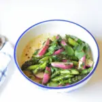 You can use leftover steamed asparagus and/or raw radishes in this dish. Aleppo chilis are mild in heat and high in flavour. If using a different chili, reduce the quantity by half.