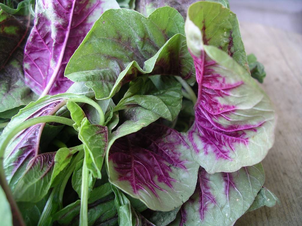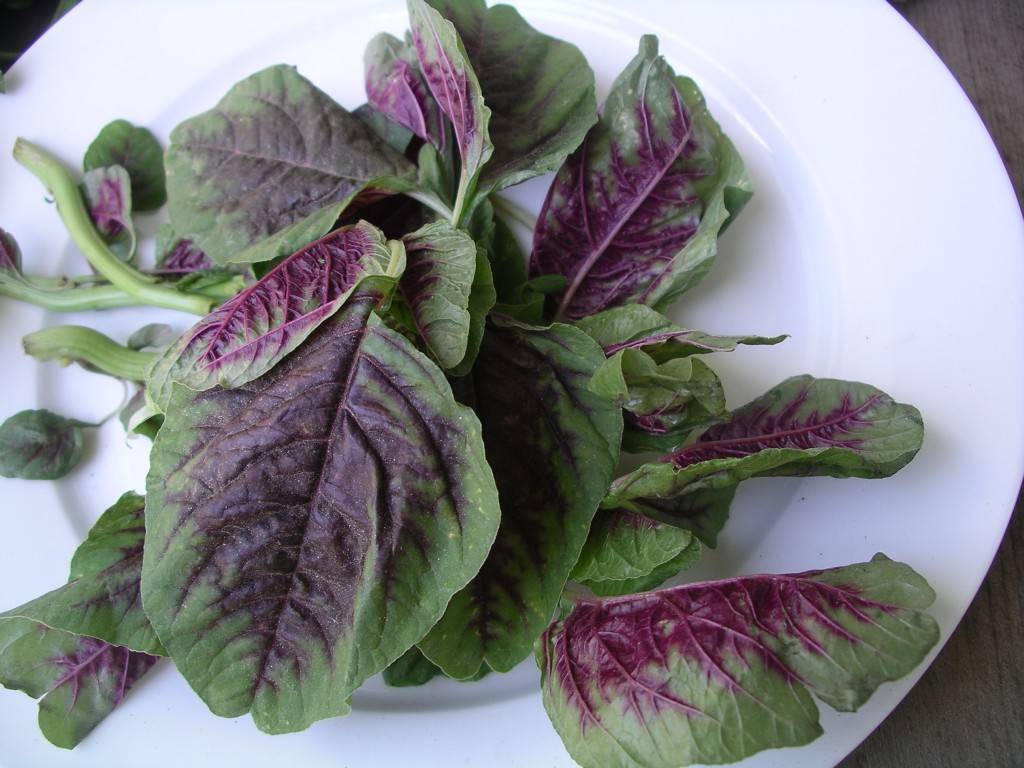 1. The all-green version is called Callaloo in the Caribbean. I have been using Yin Choy for awhile as a substitute, because most of the red fades anyway. Fry it up with onions and tomato…it’s definitely delicious and tender! And quite nutritious, especially since it has no oxalic acid like spinach. I also grow an all-burgundy variety from Vietnam that is gorgeous. But most seed companies that sell Amaranth have varieties that are selected for the seeds, and the leaves are slightly less tender.